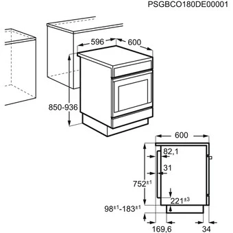 Gerätemaße HxBxT (mm) 850x596x600