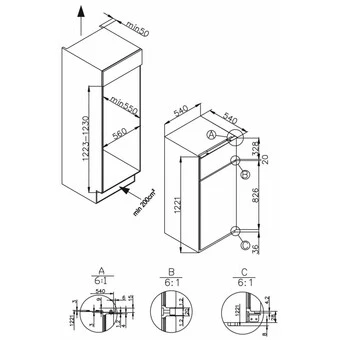 - Nische (HxBxT): 1223 – 1230 x 560 x 550 mm