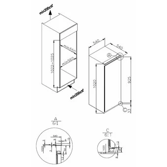 - Nische (HxBxT): 1022-1028 x 560 x 550 mm