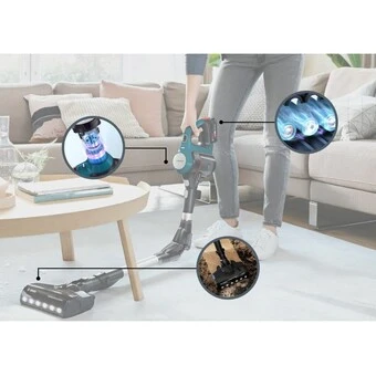 Auto-Stufe: Die Düse passt die Leistung je nach Bodenart automatisch an – egal ob Teppich oder Hartboden. Die Lösung für eine hervorragende Laufzeit und Leistung, je nachdem was für ein perfektes Reinigungsergebnis benötigt wird.