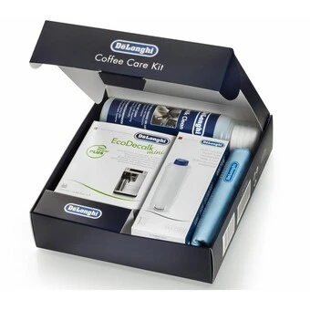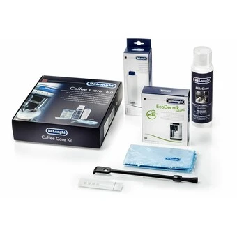 Das Coffee Care Kit ist das neue De’Longhi-Set für die Reinigung und Wartung Ihrer Kaffeemaschine. Die regelmäßige Pflege der Maschine verhindert den Verschleiß, verringert die Bildung von Kalkablagerungen, erhält die Leistungsfähigkeit des Geräts und verstärkt den natürlichen Geschmack des Kaffees. Inhalt: Wartungsanleitung – eine einfache und praktische Anleitung mit Abbildungen und Links zu den Videos für die Wartung und Reinigung der Kaffeemaschine. EcoDecalk Mini (2x100ml) – umweltfreundlicher Entkalker aus Rohstoffen pflanzlichen Ursprungs. Bei regelmäßiger Verwendung wird die optimale Leistungsfähigkeit des Geräts erhalten. Die Ansammlung von Kalkablagerungen, die Störungen verursachen, wird vermieden und das natürliche Aroma des Kaffees kommt intensiv zur Geltung. Wasserfilter – Der Wasserenthärterfilter ist zur Verringerung der Konzentration der für die Kreise der Kaffeemaschine schädlichen Mineralstoffe wie Calcium und Magnesium erforderlich. Durch seine Filterkraft wird die Wasserhärte reduziert und somit die Wasserqualität verbessert. Damit sind das volle Aroma und der volle Geschmack Ihres Kaffees jeden Tag garantiert. Milk Clean(250 ml) – ist ein antibakterielles, nicht aggressives, hochwirksames reinigendes Mittel für die Innen- und Außenreinigung der Kaffeemaschine. Dieser Universal- Entfetter entfernt gründlich sämtliche Rückstände und das Fett der Milch, die sich im Abgabekreislauf ablagern. Mikrofasertuch – Es ist ideal für alle Materialien und entfernt hartnäckigsten Schmutz. Pinsel/Spatel – Der Pinsel mit doppelter Spitze ist mit einer speziellen Spatel zum Reinigen des Kaffeesatzbehälters ausgestattet. Dank seiner Form ist eine gründliche Reinigung auch in den schwer zugänglichen Ecken möglich. Teststreifen – Dient zur schnellen Ermittlung der Wasserhärte. Dieser Vorgang ist Grundvoraussetzung für die Anpassung des Wasserfilters und die Optimierung der Funktionen der Kaffeemaschine.