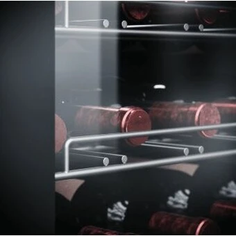 Dezentes, weißes LED-Licht beleuchtet sanft den Innenraum und hebt die Weinflaschen darin hervor