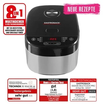 8 in 1 Multifunktionskocher mit voreingestellten Programmen: verschiedene Reissorten und Porridge kochen, One-Pot-Gerichte sowie Suppen kochen und warmhalten, Gemüse dampfgaren oder Kuchen backen