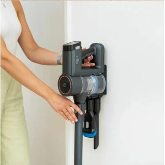 Der 550 Watt starke Digitalmotor erreicht eine Rotationsgeschwindigkeit von 100.000 U/min. Im Gegensatz zu herkömmlichen Motoren mit Kohlebürsten wird der Digitalmotor über Magnetimpulse angetrieben — das sorgt für eine wesentlich längere Lebensdauer und eine besonders starke Saugkraft.
