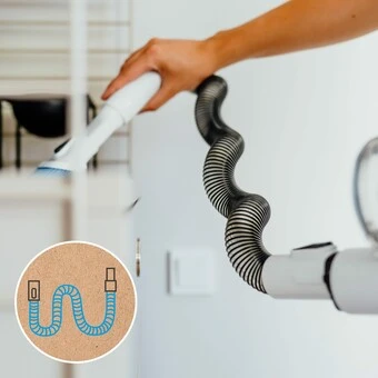 Mit flexiblem, bis auf 142 cm ausziehbaren Saugschlauch zur Reinigung schwer erreichbarer Stellen