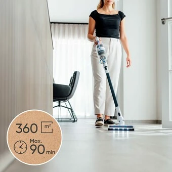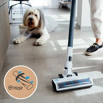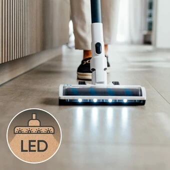 Die Elektrobürste mit Spezialwalzen verfügt über eine Selbstreinigungsfunktion und ist deshalb besonders wartungsarm. Durch die integrierte LED-Beleuchtung kannst Du Staub und Krümel auch gut in dunklen Bereichen sehen.