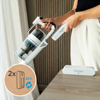 Der 400 Watt starke Digitalmotor erreicht eine Rotationsgeschwindigkeit von 100.000 U/min. Im Gegensatz zu herkömmlichen Motoren mit Kohlebürsten wird der Digitalmotor über Magnetimpulse angetrieben — das sorgt für eine wesentlich längere Lebensdauer und eine starke Saugkraft von bis zu 33 kPa.