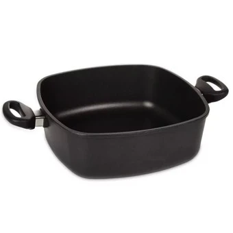 Der LIEBLINGSPFANNE Bratentopf ist aus 8 – 9 mm Aluminiumguss gefertigt. Er steht plan auf dem Kochfeld und bietet eine gleichmäßige Wärmeverteilung. Dadurch werden Speisen ausgewogen gegart. Außerdem sparen Sie beim Kochen Energie, denn das Kochgeschirr erhitzt sich schnell und hält die Wärme lange fest. Ein Verziehen des Bodens brauchen Sie nicht zu befürchten: LIEBLINGSPFANNE Kochgeschirr wird im Kokillenguss-Verfahren von Hand gefertigt. Dadurch ist es spannungsfrei und behält seine Form. Es handelt sich um echte Wertarbeit „Made in Germany“.