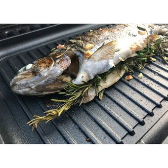 • Grillplatte eckig (36,5 x 21,5 cm) mit integrierten Seitengriffen
