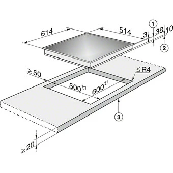 Ausschnittmaß B x T: 600 mm x 500 mm