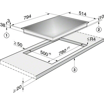 Ausschnittmaß B x T: 780 mm x 500 mm