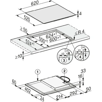 Äußeres Ausschnittmaß in mm (Breite) bei flächenbündigem Einbau: 624 mm