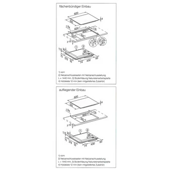 Ausschnittmaße in mm (Breite) bei aufliegendem Einbau: 600
