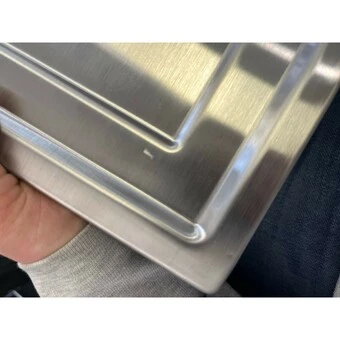 Lass das Blech abkühlen, bevor du es reinigst. Reinige es nicht in der Spülmaschine. Verwende keine scheuernden Reiniger, sondern ein mildes Spülmittel. Trockne das Blech nach jedem Waschgang vorsichtig ab. Verwende lauwarmes Wasser, um das Blech zu reinigen. Vermeide das Waschen bei hohen Temperaturen.