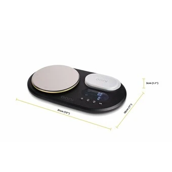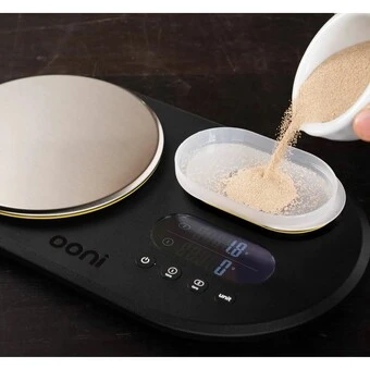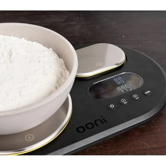 Mit unserer Ooni duale Digitalwaage kannst du deine Pizzazubereitung optimieren. So gelingt dir jedes Mal der perfekte Teig. Dosiere alle Zutaten bis auf ein Zehntelgramm genau – ja, sogar die winzigen Mengen an Salz und Hefe – mit Hilfe der Plattformen aus gebürstetem Edelstahl, einer dualen LCD-Anzeige zur gleichzeitigen Anzeige beider Plattformmessungen sowie einer passgenauen Messschale für Hefe oder Kräuter.