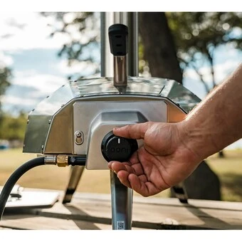 Ab jetzt kannst du mit dem Karu 12 mit Gas backen! Befestige den Brenner einfach an der Rückseite des Backofens, um ihn auf Gasbetrieb umstellen, und schon bist du bereit für wartungsarmes Backen!