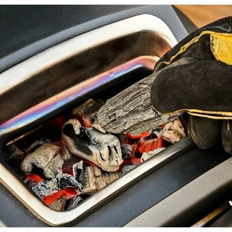 Fülle die extra große Brennstoffschale des Karu 12G mit Holz oder Holzkohle für ein authentisches Holzfeuer-Erlebnis. Oder befestige einen Gasbrenner (separat erhältlich) für einfaches Kochen mit Propangas und bis zu 36 % weniger Gasverbrauch als bei früheren Modellen.