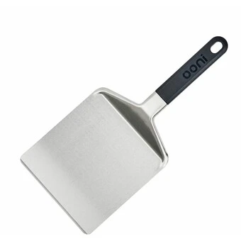Der Ooni Pizza-Servierheber für Blechpizza hat einen breiten Klingenkopf mit einer abgeschrägten Kante. Er ist ideal zum Zerteilen der knusprigsten Ränder und zum mühelosen Herausnehmen deiner Pizza aus dem Blech.