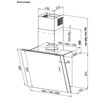 Wandhaube im Kopffrei-Design, Haubenkörper schwarz oder weiß mit Edelstahlschacht, Glasschirm Sicherheitsglas schwarz oder weiß oder Edelstahl 90/75/60 cm