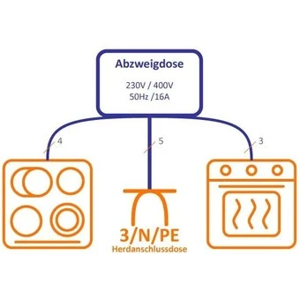 - Stromverteiler für getrennt eingebaute Küchengeräte durch Weiternutzung der bestehenden Herdanschlussdose