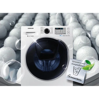 Die SchaumAktiv-Technologie von Samsung sorgt für eine sehr gründliche und dabei schonende Reinigung auch empfindlicher Kleidungsstücke – bereits bei niedrigen Waschtemperaturen. Dazu wird ein Schaumpolster erzeugt, das deine Kleidung sanft umhüllt. Schon vor dem Waschgang aufgelöst, entfaltet das Waschmittel ohne Verzögerung seine ganze Kraft. So kannst du schon bei 20 Grad energie- und kosteneffizient waschen – bei gleicher Waschleistung.