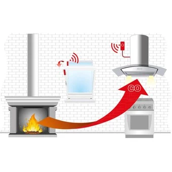 Dieses Gerät ist ein Hilfsmittel zur Erhöhung der Sicherheit bei gleichzeitigem Betrieb eines Abluftgerätes wie z.B. einer Dunstabzugshaube, Muldenlüfter, de-/zentrale Lüftungsanlage, Bad-/WC-Lüfter, etc. und einer Feuerstätte (Forderung der Feuerungsverordnung).