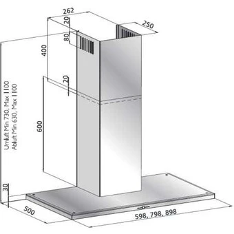 Mindestabstand zwischen Kochgerät und Haubenunterkante: