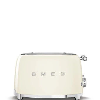 Mit dem Smeg 4-Schlitz-Toaster TSF03 im Retro-Stil der 50er Jahre bekommt jetzt jedes Familienmitglied knuspriges Gebäck im Handumdrehen. Und zwar genau so hell oder dunkel, wie er oder sie es am liebsten mag. Dafür sorgen die extrabreiten Toastschlitze, die sich paarweise auf 6 Röststufen unabhängig voneinander regulieren lassen. Für den perfekten Bagel-Genuss bräunt der Toaster auch nur von einer Seite. Zusätzlich bietet das Multifunktionsgerät Automatikprogramme zum Aufwärmen und Auftauen.